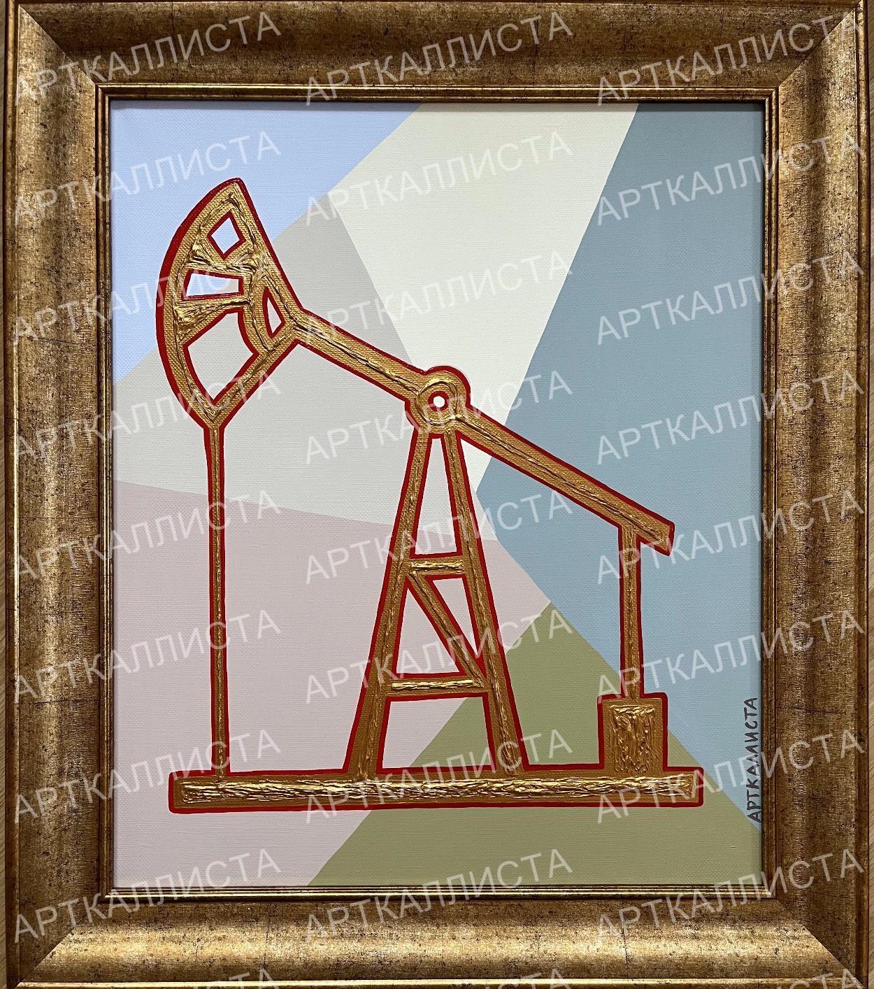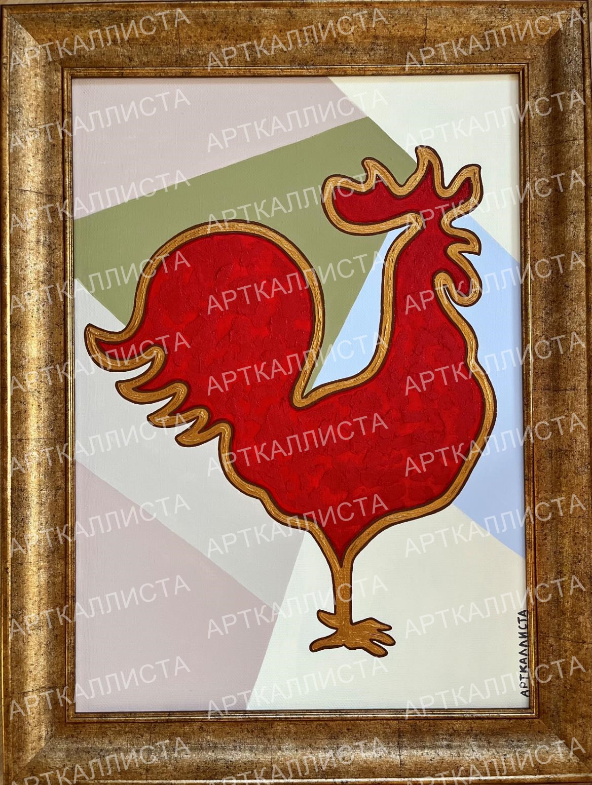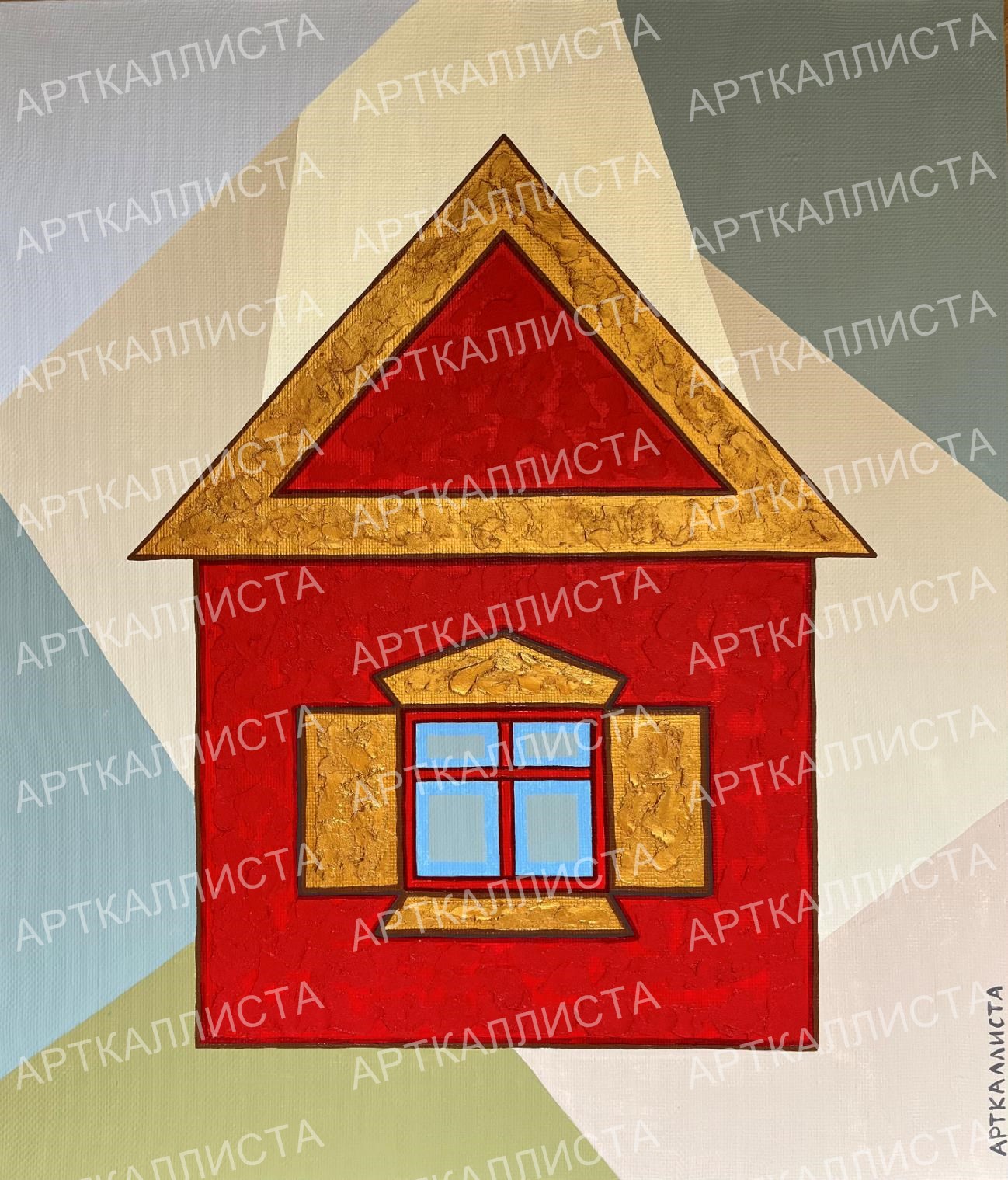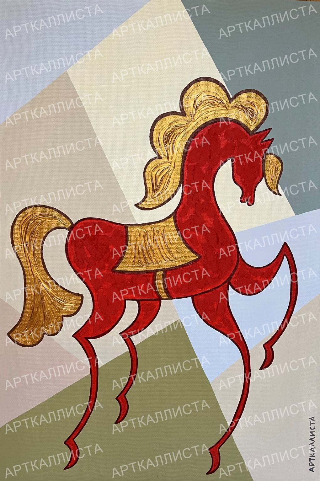 Преобладающими цветами на полотнах новой коллекции являются: красный, золотой и пастельные оттенки. Выбор цветов очевиден с точки зрения цветовой композиции, но, даже он таит в себе внутреннюю осмысленность. КРАСНЫЙ – издревле цвет русского государства, цвет одежды русских воинов – стрельцов, и, кроме прочего, цвет крови врагов России. Красный цвет присутствовал на русском национальном флаге 1914 года, а до этого, на Петровском триколоре. После Октябрьской революции и кровопролитной Гражданской войны, красный цвет становится символом нового Советского государства и советского общества. Красный – естественный цвет кладки московского Кремля, который является символом всей русской государственности. ЗОЛОТОЙ ЦВЕТ, в России, ассоциируется с русским пшеничным полем, православием (чистый цвет неба господнего и Славы Божьей, широко известны золотые купола и инкрустированные золотом иконы), верховной властью (императорской короной, инкрустированным императорским троном) и богатством. Желто-золотой цвет фигурирует на Романовском династическом флаге и императорском штандарте. Золотые серп и молот – спутники советской эпохи, закрепленные в медали, вручавшейся Героям Социалистического Труда. ПАСТЕЛЬНЫЕ ЦВЕТА, присутствуют на картинах Каллисты, являясь фоном, таким образом происходит смягчение двух основных ярких цветов коллекции. Мягкость фона говорит о том, что несмотря на жизненные трудности и противостояние все будет прекрасно, и живем мы в лучшем из возможных миров.
